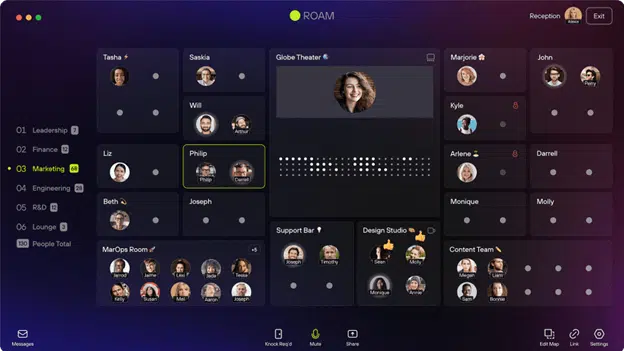 Roam’s beta program just got underway, but early telemetry indicates that users spend the vast majority of their workday logged in and meeting more often but for much less time than in the traditional workplace. One of Roam’s core tenets is the culture that has developed around meetings. I may only need a 10-minute chat with a coworker, but I end up scheduling an appointment for one week from now for 30 minutes. Removing that inefficiency can move organizations back toward the immediacy of in-person interaction and improve the velocity of the entire business. Couple that with a UI intended to make employees feel that they are part of something bigger than themselves, and the potential for real organizational change gets exciting.